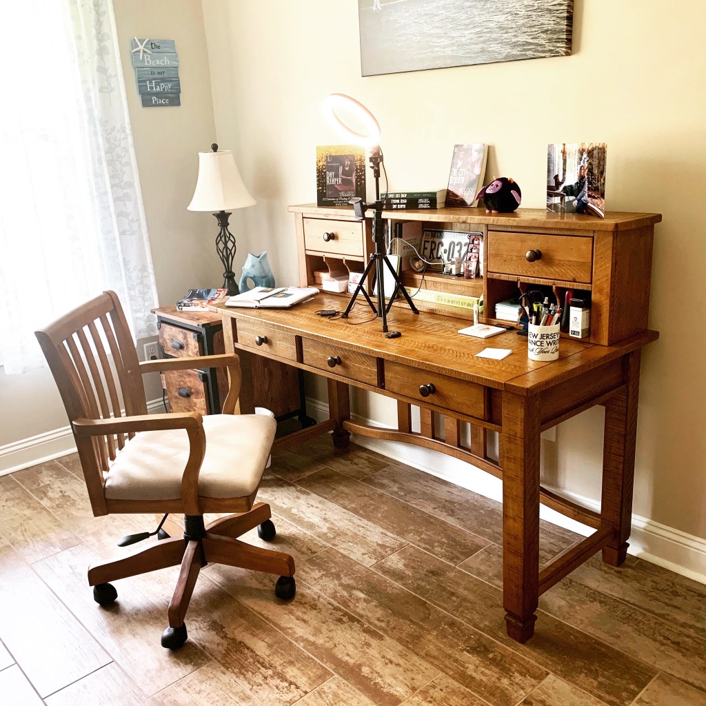 A tripod here, a light there and BAM – my writing desk is transformed into a video studio! A day filming promo videos… and now I’m ready for (and deserving of) some pizza!!