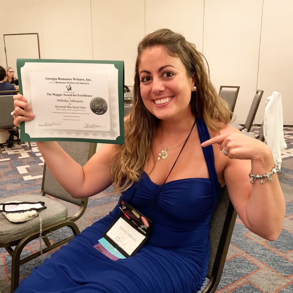 I am officially an award winning author!! Beyond the Next Star placed first in the published Maggie Awards, paranormal category!! Eight years ago, I attended my first Moonlight and Magnolias conference, and I didn’t know anything about pitching or publishing. I just wanted to write and somehow, share my stories with the world. Thank you Georgia Romance Writers – this is a dream come true!!