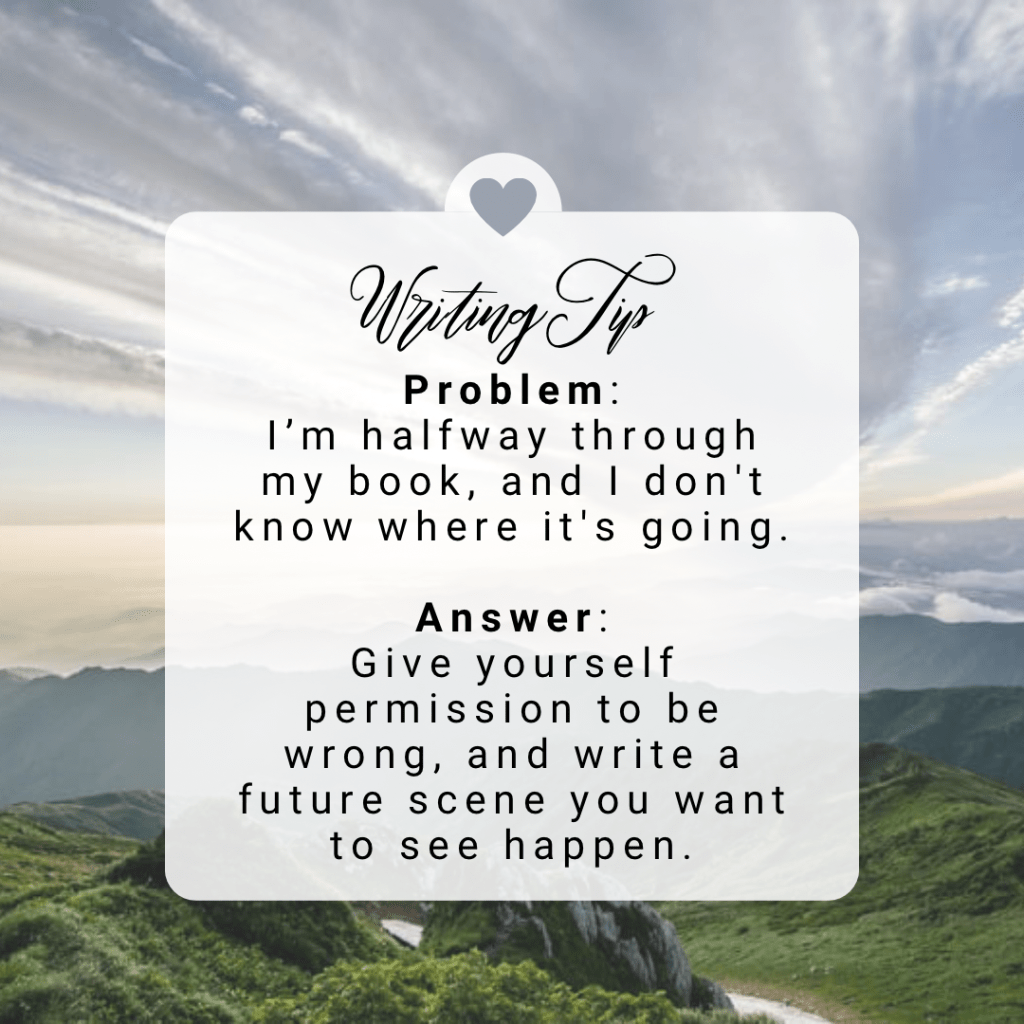 🥳Recommendation: The beauty of writing is that unlike other arts, we have a delete button! So give yourself permission to be wrong, and write a future scene you want to happen, a possible ending for your story, or some random dialogue. It’s okay if you never even use it (I bet you will) but the point is to keep actively thinking. Once you’re not so entirely focused on being stuck, a connection will spark, and you’ll find your way forward.