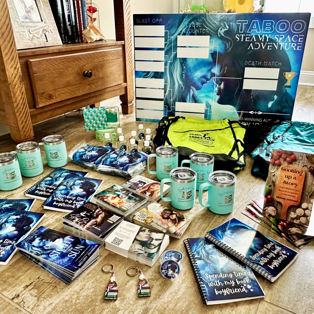 After a long day of prepping for my upcoming convention, I’ve got my books packed, giveaways organized, and presentation planned. I’m officially ready!! And not a day too soon… T-minus one day to Space Coast Book Lovers!!