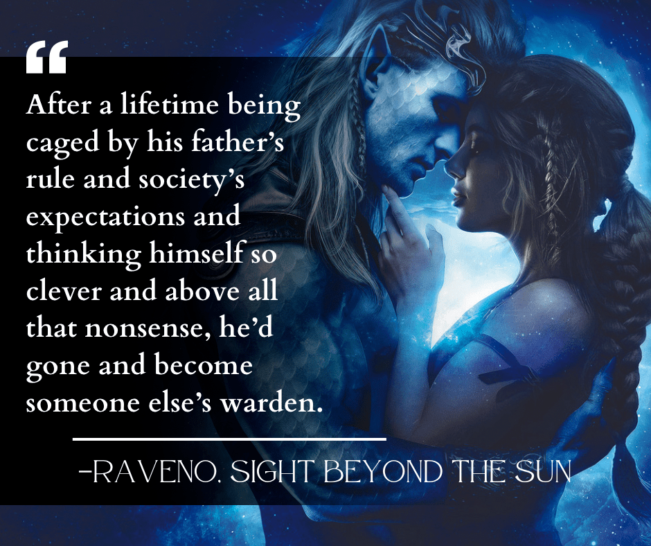 One of the themes that Sight Beyond the Sun explores is the concept of escaping cages. The heroine, Kinsley Morales, is trapped in a physical cage after being abducted by aliens. The cage is luxurious, with every comfort and amenity she might need, if only she hadn’t been taken against her will. Although Kinsley resents the aliens who abducted her, she has more in common with them than she might think. The hero, Raveno Hoviir, is trapped in the metaphorical cage of his father’s tyrannical rule. He abducted her while working undercover, plotting against his father in the hopes of liberating his planet. One of my favorite parts of writing their love story was building the trust between them and watching them work together to fight for their freedom.