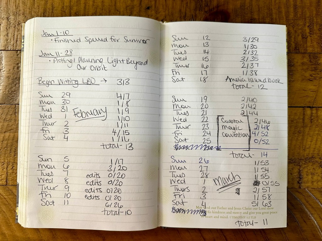 I began writing Light Beyond Our Orbit (Love Beyond, book 3) on January 28, 2023, and as of today, an entire year and 1 month later, I have written “The End,” clocking in at 167,145 words!! Granted, I still need to double back to finish two spicy scenes mid-book, then begin the editing process… but I’m officially done with draft 1 of this epic adventure!