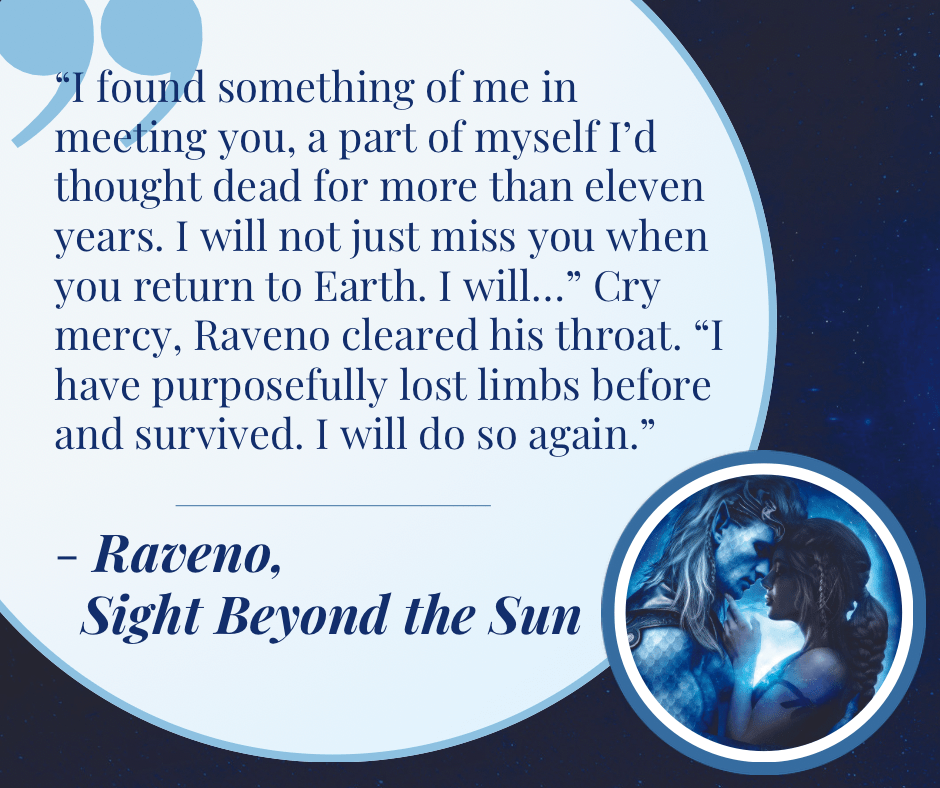 Another theme I enjoyed exploring in Sight Beyond the Sun was the bonds of blood versus found family. Both my hero and heroine struggle with the role they were born into. Kinsley has always felt misunderstood because of her love for explosives, and Raveno has always felt inadequate when pitted against his father’s impossible standards. To find happiness, they need to carve their own path and find their own family.