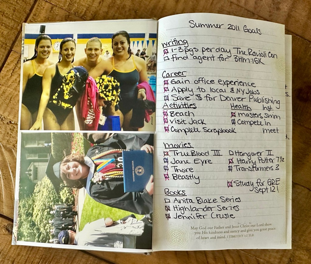 Today marked a small milestone in my writing life: I filled my journal. Looking back, my first entry was “Summer 2011 Goals” and started in June following my college graduation. The first half of this journal began as part diary and part check list, detailing highlights of my day and the writing/career/activity goals I achieved. The second half finished as a log of daily page counts from my writing life. In the last entry of the diary section, February 2014, I found an especially dear and hilarious final entry. It describes my cute meet with Derek (described as the “best boyfriend ever – no joke”) and waiting to hear back from Kensington Publishing after submitting the full manuscript of The City Beneath. Little did I know at the time that I had met my future husband and the traditional publisher for my debut novel!