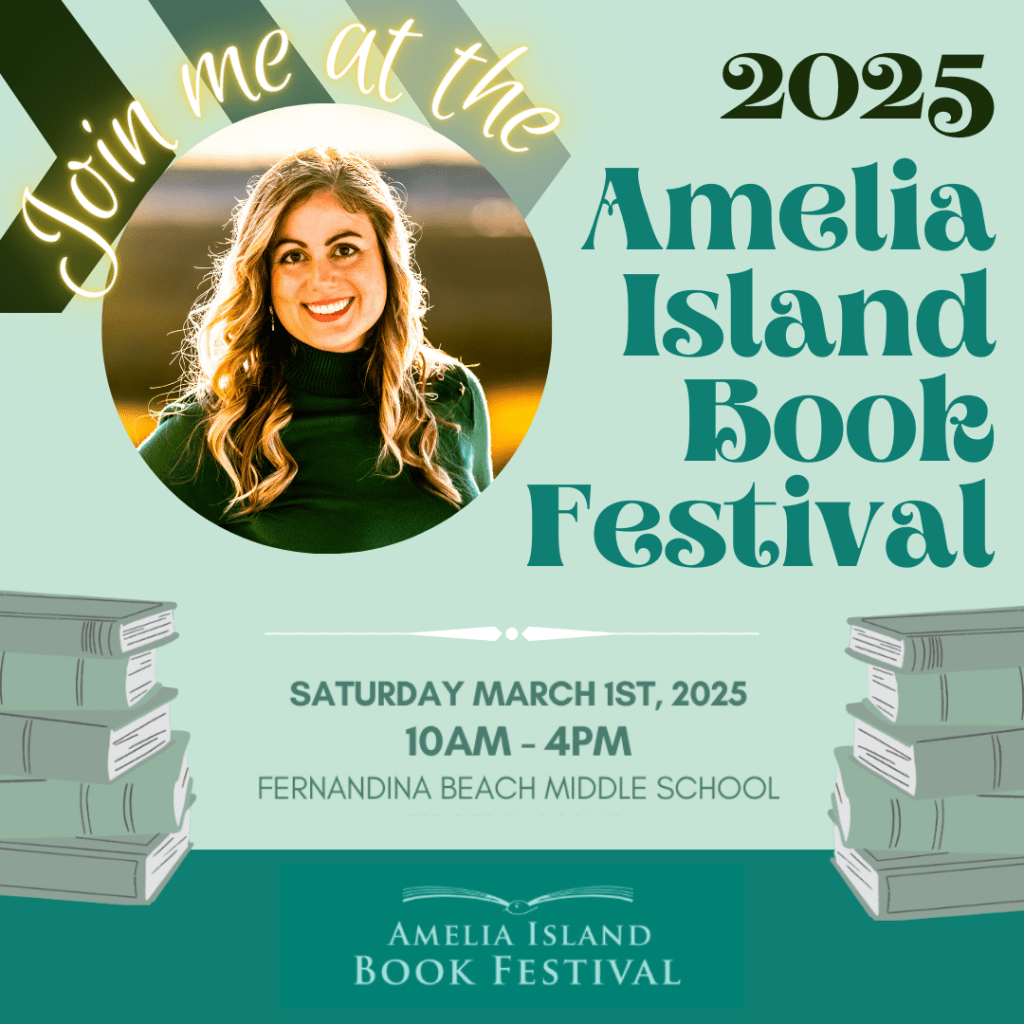 The Amelia Island Book Festival is this Saturday! Join me at Fernandina Beach Middle School (315 Citrona Drive, Fernandina Beach, FL) on March 1, 2025, 10am-4pm, and meet your next favorite local author. With numerous author breakout presentations, a book signing, and food trucks, readers will be engaged and entertained. Not to mention, it’s blocks from the beach, so after the book signing, you can enjoy your haul in the sand and surf. See you there!