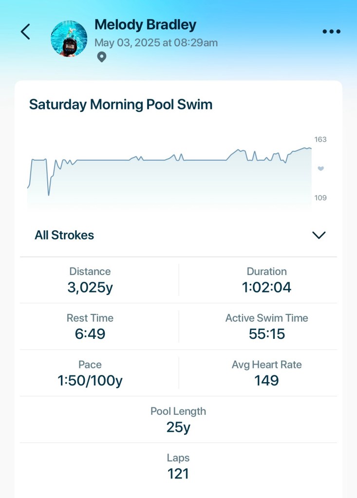 Once a swimmer, always a swimmer! Just when I think I’m becoming an old lady—stiff neck, lower back ache, feeling run down—nope, all I needed was a little pool time. One hour and 3K yards later, and I’m ready to write another chapter in my book, working on my new Romantasy series and my tan.