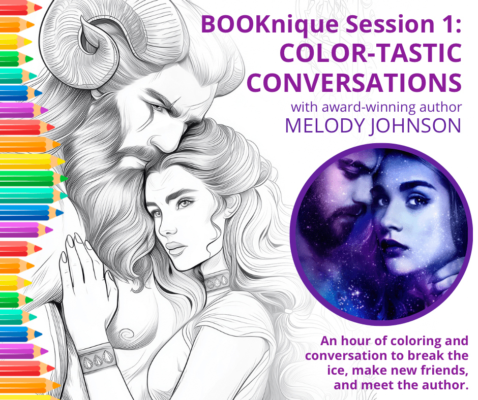 I’m excited to once again host a Booknique at this year’s Space Coast Book Lovers! Join me for Color-tastic Conversations, an hour of coloring and ice breaker games. During this memorable and intimate experience, participants will create a beautiful and unique keepsake while playing a “get to know you” game with me and their fellow readers. This year, coloring sheets featuring never before seen character art of Delaney and Torek from Beyond the Next Star will be given as an exclusive swag item for this Booknique! So many people have asked me what Torek looks like, so I’m thrilled to offer this sneak peek. Also, special shoutout to Florida Girl Design for her talent in bringing my vision to life! This activity is the perfect way to meet me, make new friends with your fellow readers, and get creative. Let’s have a color-tastic time!